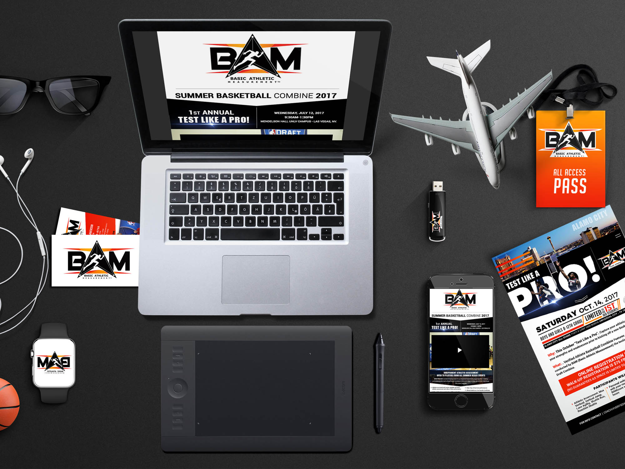 Basic Athletic Measurement is a testing service used by the NBA Draft and over 40 Division I schools. The service is prominently featured in the hit Netflix film "Hustle" with Adam Sandler. Our creative design team at EI delivered company rebranding for Basic Athletic Measurement. This rebranding included event signage, website, uniforms, and logo.